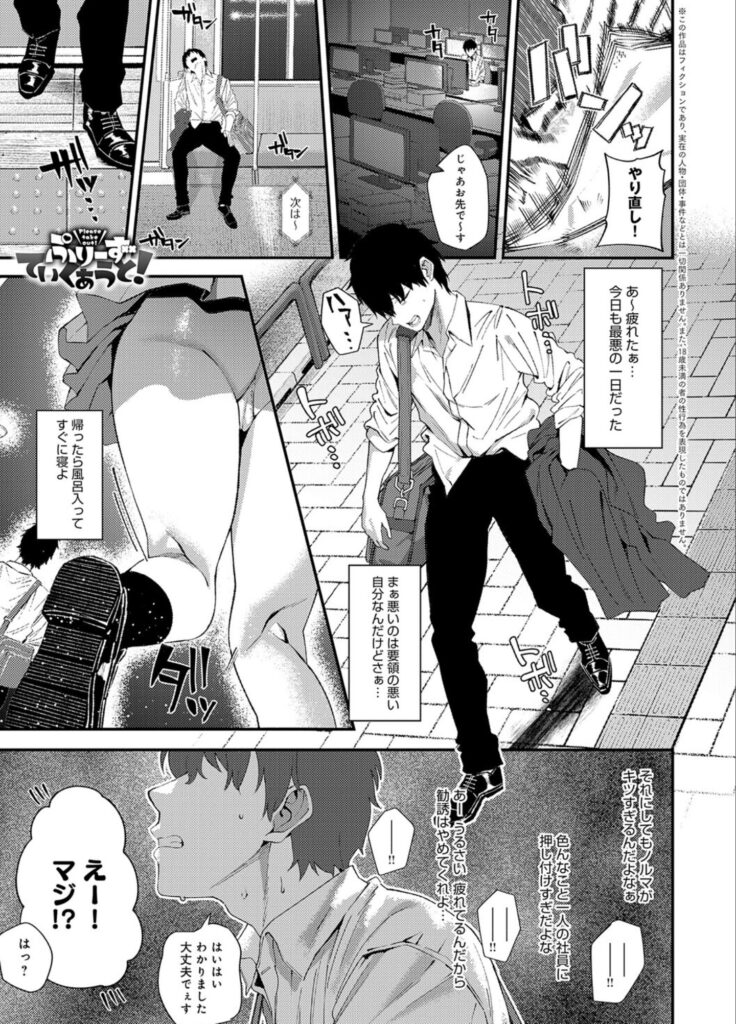| 気まぐれGraduation | ![]() | コンビニバイトの生田は、からかい上手で超ミニスカの後輩JK・柳に振り回される日々。「私で卒業しますか?」と誘われラブホテルに連行されます。シャワーからお互いの体を触りっこしてイカされた後、柳にベッドで筆おろしをしてもらうという、バイト先の後輩JKとの夢のような童貞卒業ストーリー。「制服」「童貞」といったジャンルに、「肉感セックス」の描写が加わります。 |