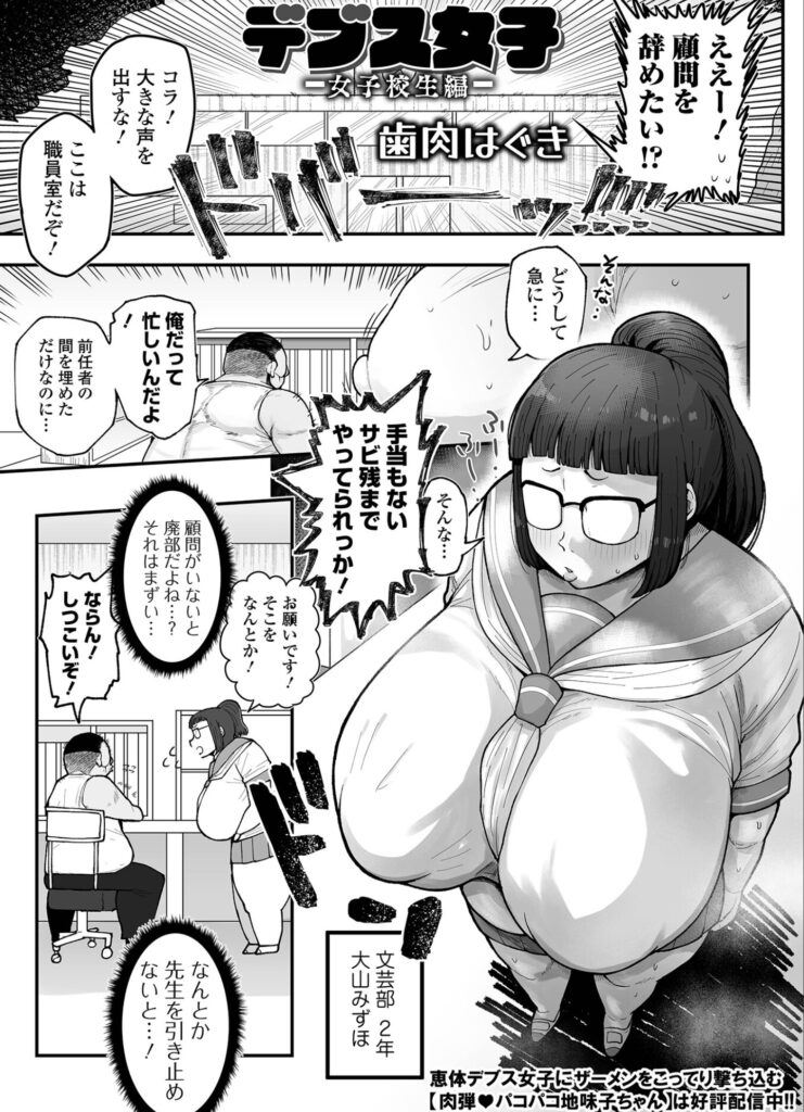初回90%OFFクーポンを利用して、安全かつ非常にお得に、歯肉はぐき先生が描く『デブス女子 -女子校生編-』を、FANZAブックスという公式の場で最高のクオリティでご堪能ください。