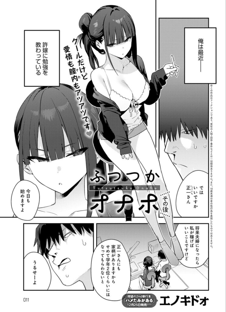 FANZAブックス(DMMブックス)にて独占先行完結配信が予定されている、超人気作家・エノキドォ先生が贈る背徳シリーズ最新作、『ふつつかオナホ その後』。本作は、前作でオナホ扱いを申し出たダウナー系許嫁・柊さつきとの、屈辱と愛が入り混じる異常な関係性の続きを描いた続編エロスです。