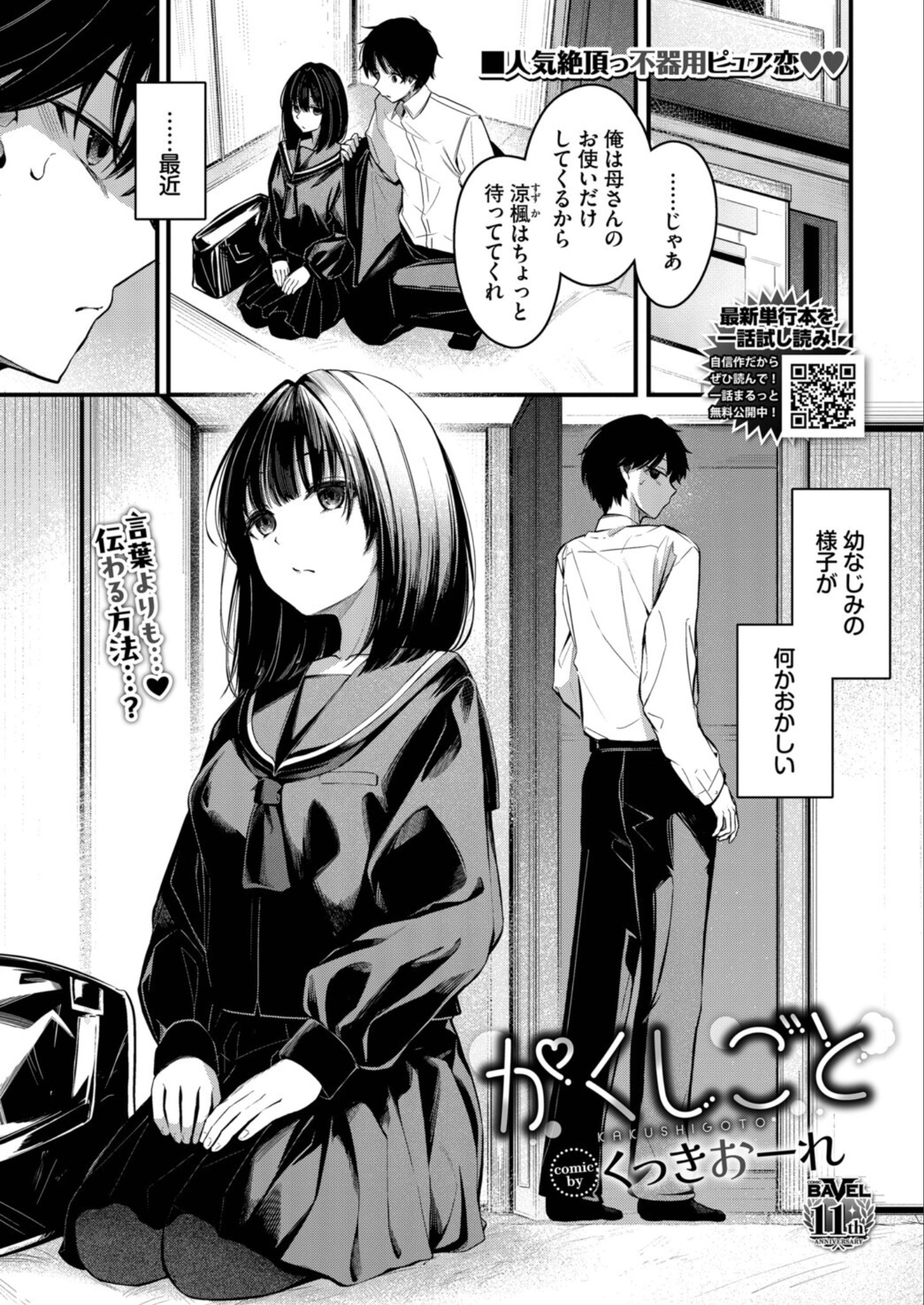 トロあま純愛コミッカー・くっきおーれ先生が描く、繊細で濃厚なラブ&Hストーリー『かくしごと』が、新刊独占先行で登場しました。本作は、長年連れ添った幼なじみ同士の、秘められた欲望と純粋な恋心が交錯するピュア恋譚です。