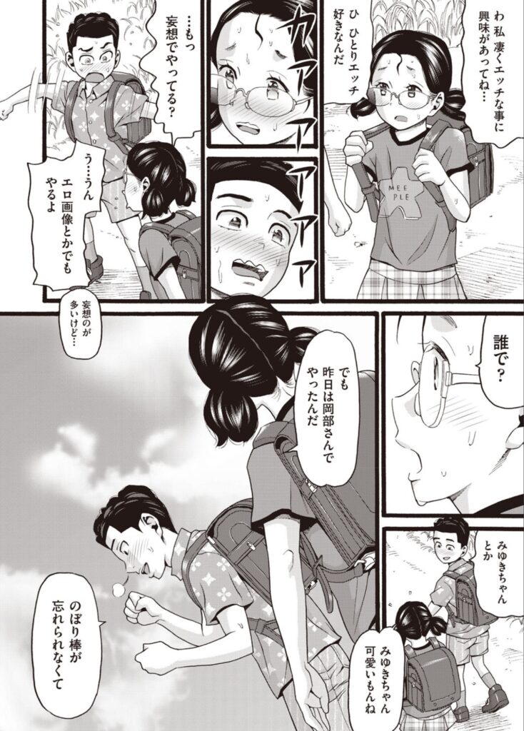 彼らが経験するのは、初めて目の前にする異性の性器、そして初めて他人に触れられる快感です。一度扉を開けてしまった二人の性的な興味は止まることなくクラスの誰もがまだ知らない誰よりも早い初体験を迎えることになります。